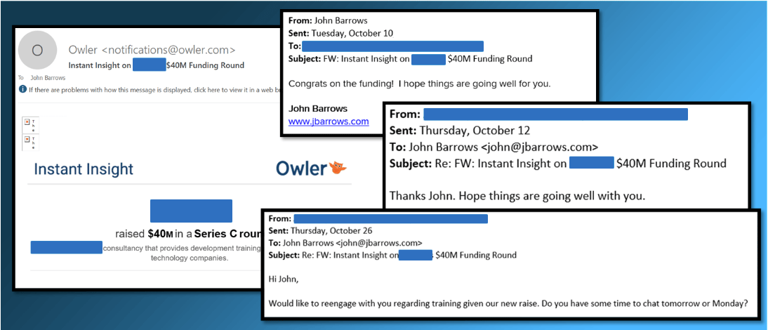 As an added bonus, another way of staying top of mind without being annoying, I set up my top 25 Tier1 prospects on tracking tools like Owler (not a sponsor) to get alerts on very specific trigger events like M&A, new product launches, hiring, etc.